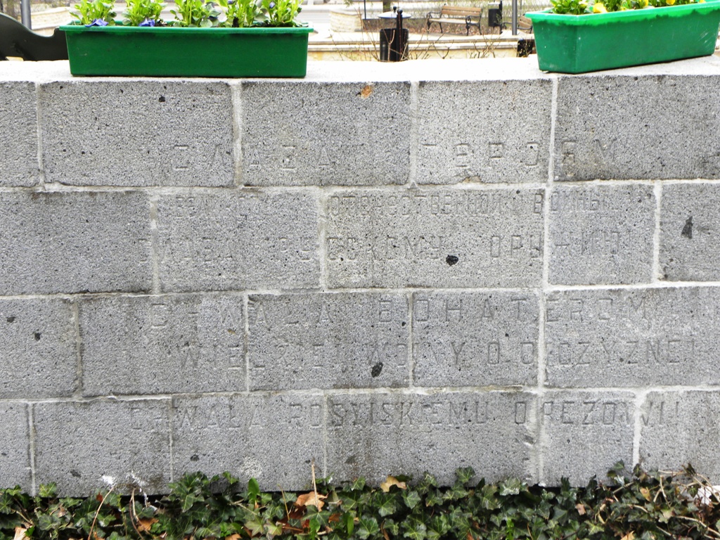„CHWAŁA CZERWONEJ ARMII OSWOBODZICIELCE POLSKI/ OD JARZMA NIEMIECKO-FASZYSTOWSKIEGO ZABORU”