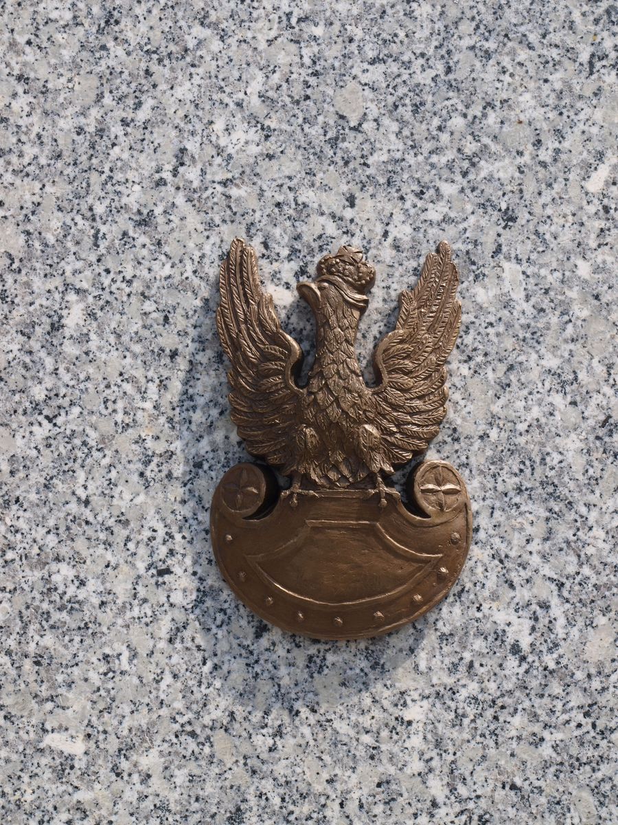 Na mogile nagrobek z jasnego granitu, przy jednym z krótszych boków nakryty, dwiema zachodzącymi na siebie schodnkowo granitowymi płytami. Na ich krawędziach wyryty jest napis: "A JEŚLI POLSKA ZNÓW BĘDZIE W POTRZEBIE/ ZEJDĄ NA ZIEMIĘ, CHOĆ LEPIEJ IM W NIEBIE"