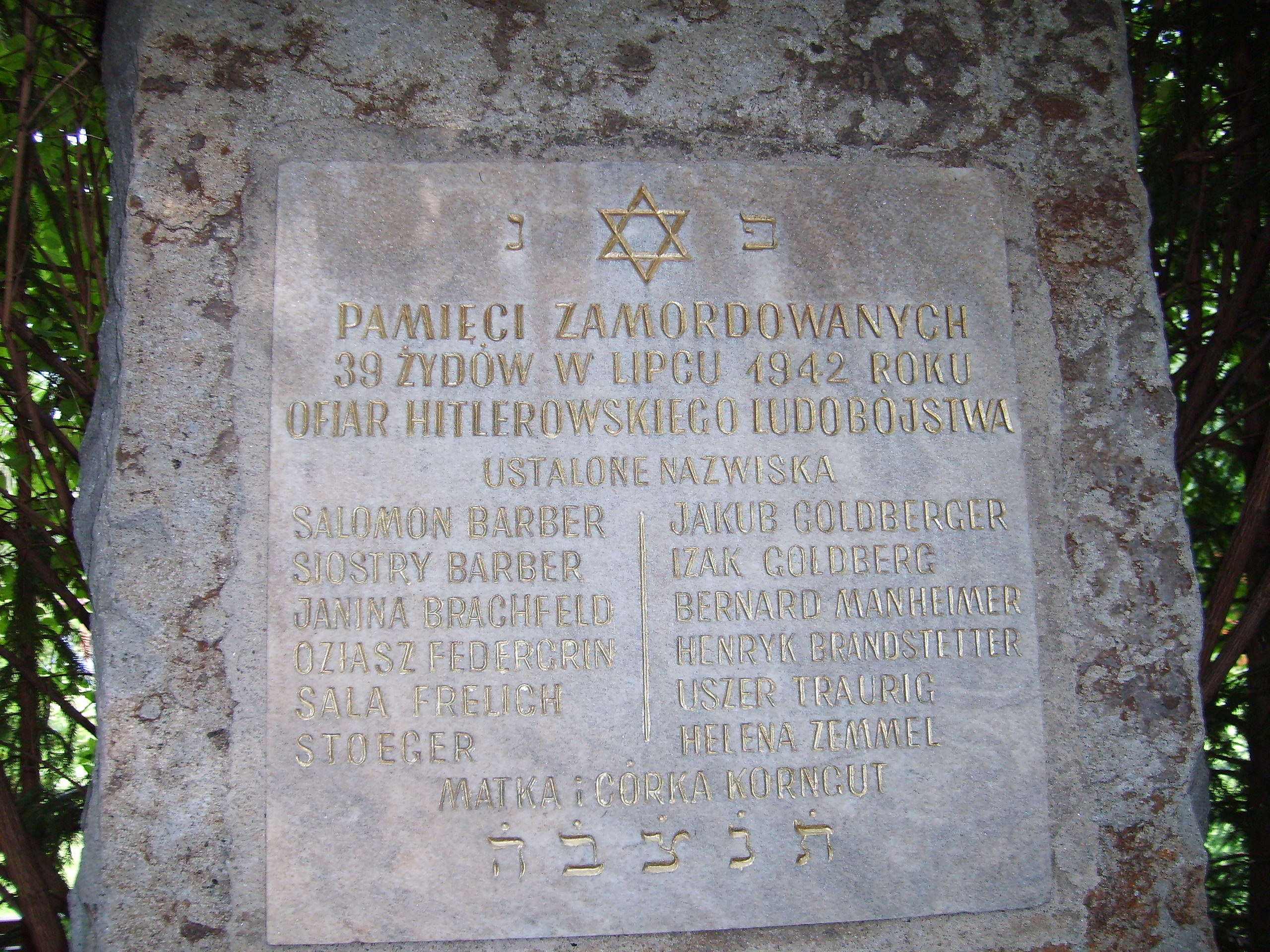 „PAMIĘCI ZAMORDOWANYCH 39 ŻYDÓW W LIPCU 1942 ROKU