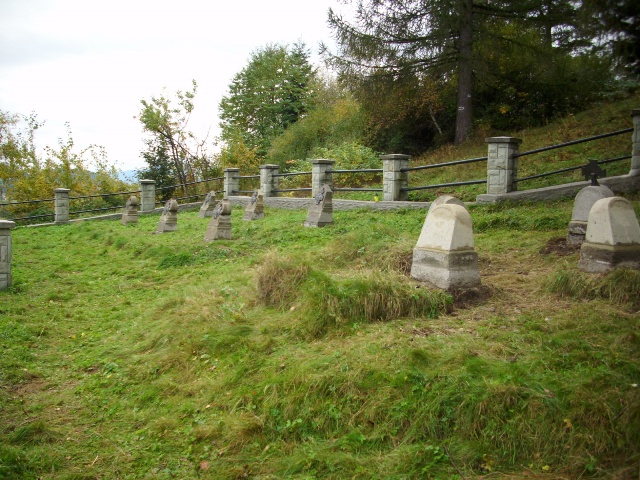 W 16 grobach zbiorowych i 10 pojedynczych pochowano tu 47 żołnierzy z armii austro-węgierskiej i 32 z armii rosyjskiej. Znane są nazwiska 16 pochowanych.