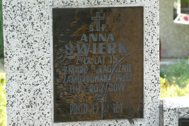 Pochowano tu trzy osoby zastrzelone przez żołnierzy niemieckich 21 sierpnia 1944 r.