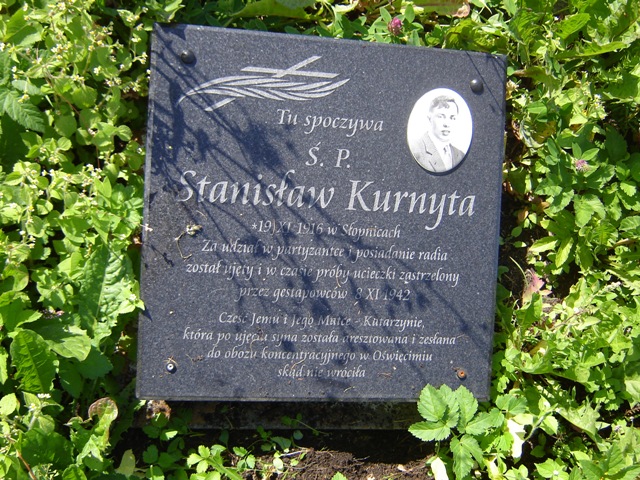 Mogiła ziemna z prostokątnym betonowym obramowaniem. U wezgłowia pulpitowa tablica nagrobna z czarnego kamienia ze zdjęciem zmarłego, wyrytym krzyżem łacińskim oraz napisem memoratywnym: „Tu spoczywa/ Ś.P. Stanisław Kurnyta/ *19 XI 1916 w Słopnicach/ Za udział w partyzantce i posiadanie radia/ został ujęty i w czasie próby ucieczki zastrzelony/ przez gestapowców 8 XI 1942/ Cześć Jemu i Jego Matce – Katarzynie/ która po ujęciu syna została aresztowana i zesłana do obozu koncentracyjnego w Oświęcimiu/ skąd nie wróciła”.