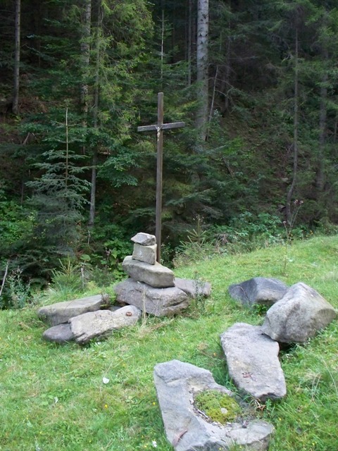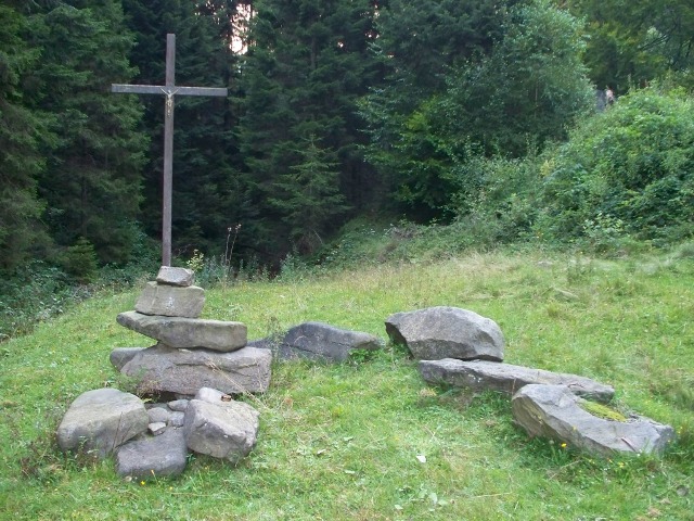Mogiła ziemna, obłożona głazami. Na mogile umieszczony jest wysoki krzyż z drewnianych belek z pasyjką na skrzyżowaniu ramion. Miejsce pochówku znajduje sie ok. 4 m krzyża i kamiennych głazów.