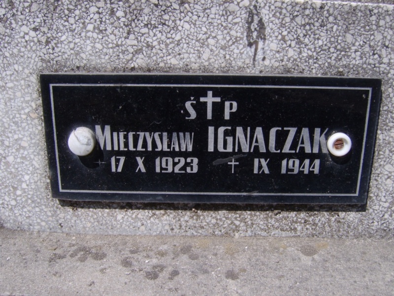 Mieczysław Ignaczak został zastrzelony przez SS we wrześniu 1944 r. w lesie w Gołkowicach Dolnych.