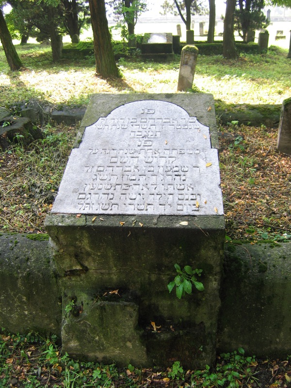 Mogiła otoczona jest betonowym murkiem na planie prostokąta. Główny element urządzenia mogiły stanowi betonowy, ścięty pulpitowo postument z wmurowaną tablicą z jasnego kamienia, przylegający do obramowania. W obrębie mogiły znajduje się macewa z inskrypcjami. Przy zewnętrznej krawędzi obramowania umieszczona jest tablica memoratywna. Wszystkie napisy wykonane są w języku hebrajskim.
