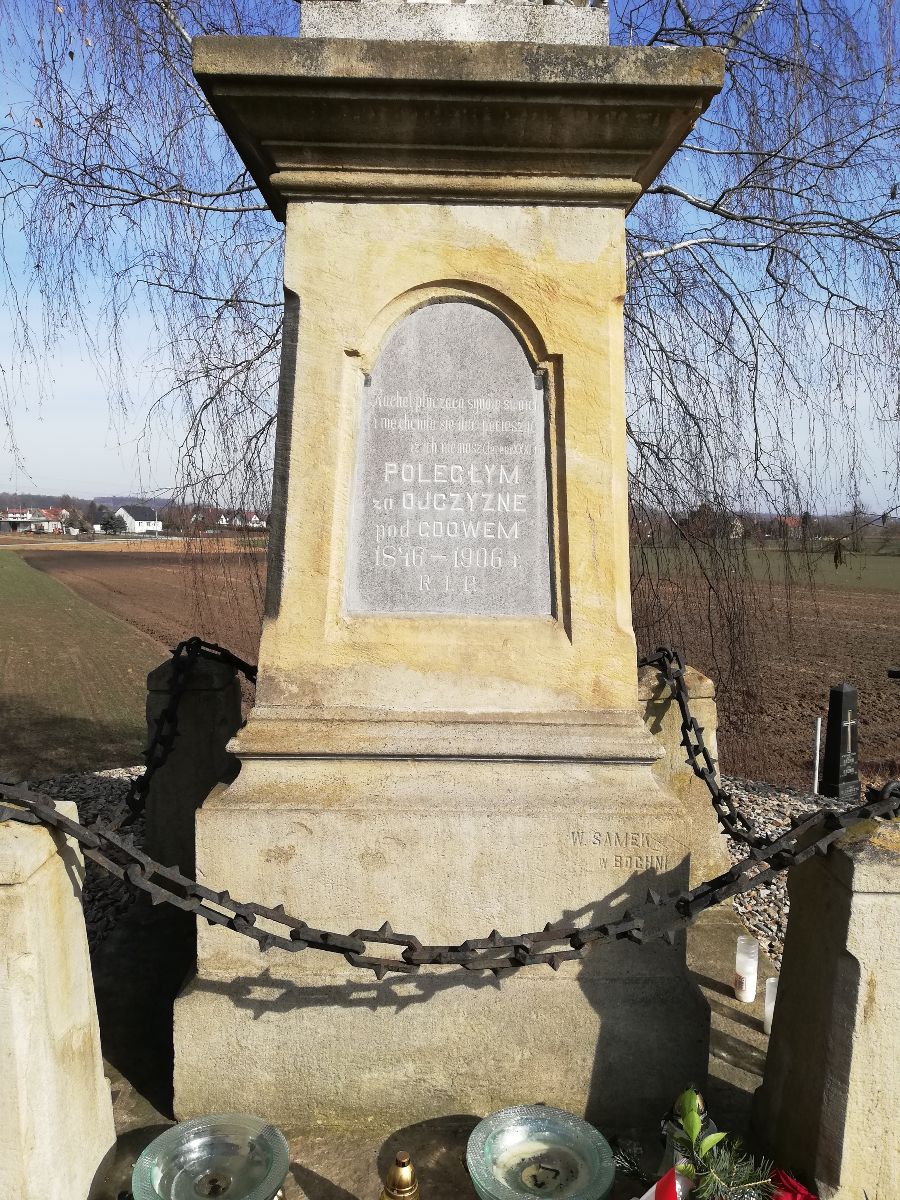 – „Rachel płacząca synów swoich/ i nie chciała się dać pocieszyć/ iż ich nie masz Jerem XXXI/ POLEGŁYM za OJCZYZNE/ pod GDOWEM/ 1846–1906 r./ R.I.P."