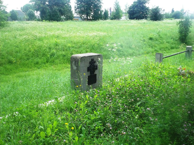 W obrębie obiektu usytuowany jest krzyż z metalowych rur.