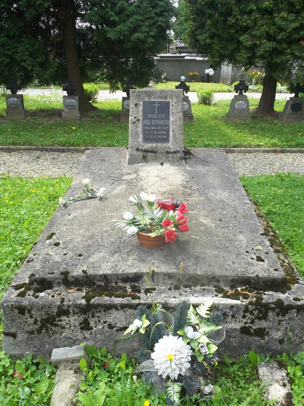 W obrębie kwatery znajduje się grobowiec ze stelą formie ściętego prostopadłościanu, w którą wmurowana jest tablica z ciemnego szkliwa. Na tablicy umieszczony jest krzyż łaciński oraz napis „TADEUSZ/ POŁOTNICKI/ PORUCZNIK ART. W.P./ * 4.VIII.1890 r./ † 12.X.1919 r.”