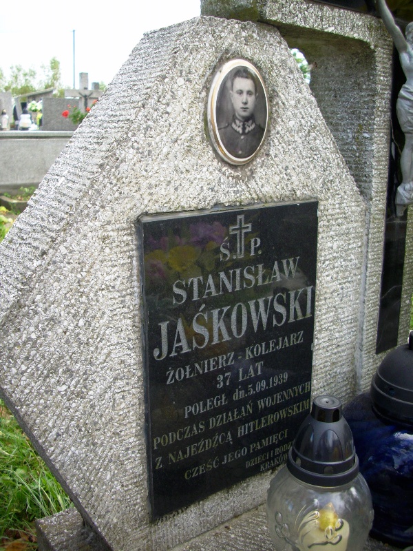 Kwatera składa się z dwóch nagrobków. Grób Stanisława Jaśkowskiego jest obramowany i nakryty lastrykową płytą. U wezgłowia mogiły znajdują się: kwietnik, krzyż z figurą Chrystusa oraz sześciokątna stela ze zdjęciem poległego. Na steli umieszczona jest tablica memoratywna z napisem: „Ś.†P./ STANISŁAW JAŚKOWSKI/ ŻOŁNIERZ – KOLEJARZ/ 37 LAT/ POLEGŁ dn. 5.09.1939/ PODCZAS DZIAŁAŃ WOJENNYCH/ Z NAJEŹDŹCĄ HITLEROWSKIM/ CZEŚĆ JEGO PAMIĘCI/ DZIECI I RODZINA/ KRAKÓW”.