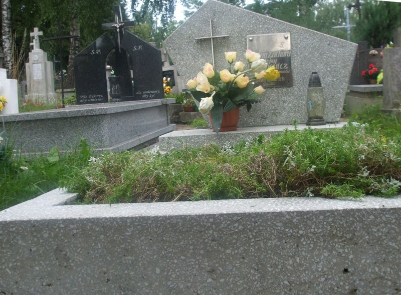 Mogiła ziemna w lastrykowym obramowaniu. U wezgłowia stela w kształcie niesymetrycznego pięcioboku z metalowym krzyżem oraz tabliczką z napisem: „Ś.P./ Stefan Zachara/ Alojzy Lechowicz/ zamordowani przez Hitlerowców/ 18.10.1939 r/ Boże zbaw ich/ dusze”.