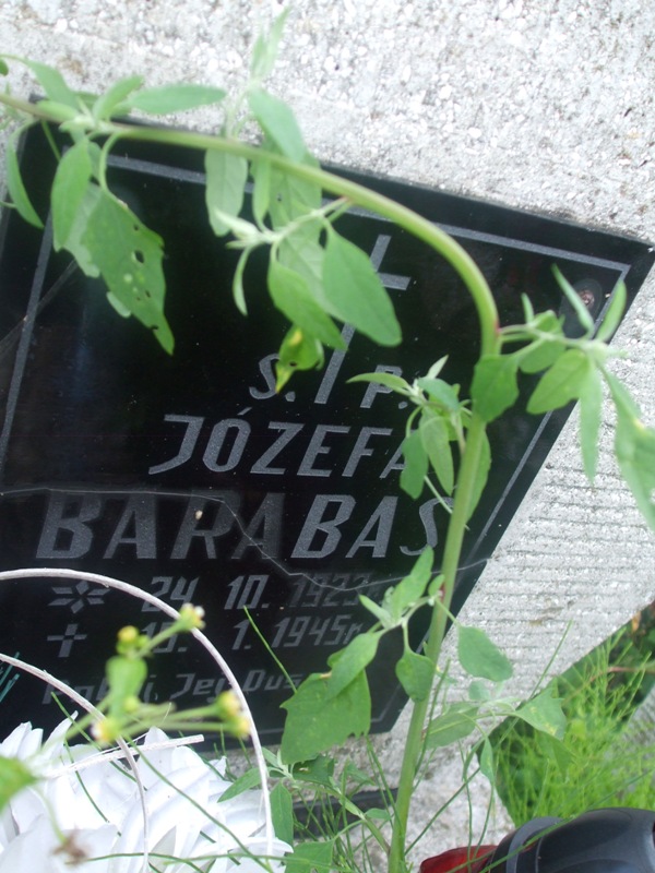 Mogiła ziemna w betonowym obramowaniu. U wezgłowia mogiły znajduje się krzyż łaciński oraz stela w kształcie niesymetrycznego pięcioboku. Na licu betonowego krzyża umieszczony jest krzyż z czarnego szkliwa z metalową pasyjką. Na licu steli znajduje się tablica z czarnego szkliwa z napisem: „Ś.†P./ JÓZEFA/BARABAŚ/ * 24.10.1923 r./ † 13.1.1945 r./ Pokój Jej Duszy”.