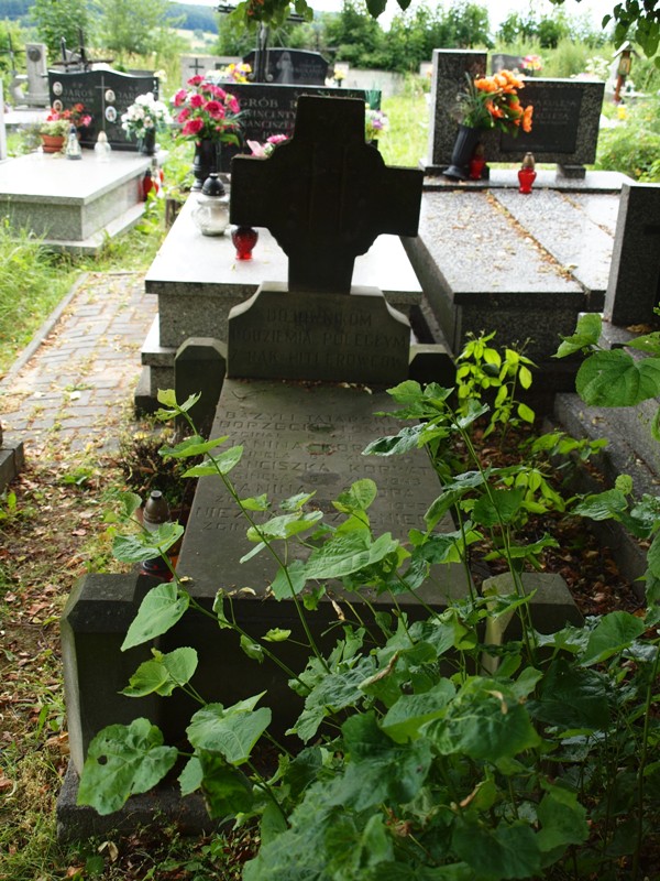 Na mogile znajduje się nagrobek wykonany z piaskowca. U wezgłowia mogiły, na niskim postumencie umieszczony jest masywny, równoramienny krzyż z wyrytymi mieczami na skrzyżowaniu ramion. Na podstawie krzyża znajduje się inskrypcja: „BOJOWNIKOM/ PODZIEMIA POLEGŁYM/ Z RĄK HITLEROWCÓW”. Na płycie nagrobnej wyryty jest napis „BAZYLI TATARSKI PS. BORZĘCKI TOMICKI/ ZGINĄŁ 6.XII.1943/ JANINA KORWAT/ ZGINĘŁA 6.XI.1943/ FRANCISZKA KORWAT/ ZGINĘŁA 6.XI.1943/ JANINA SZOPA/ ZGINĘŁA 6.XI.1943/ NIEZNANY ŻOŁNIERZ/ ZGINĄŁ W LECIE 1943”.