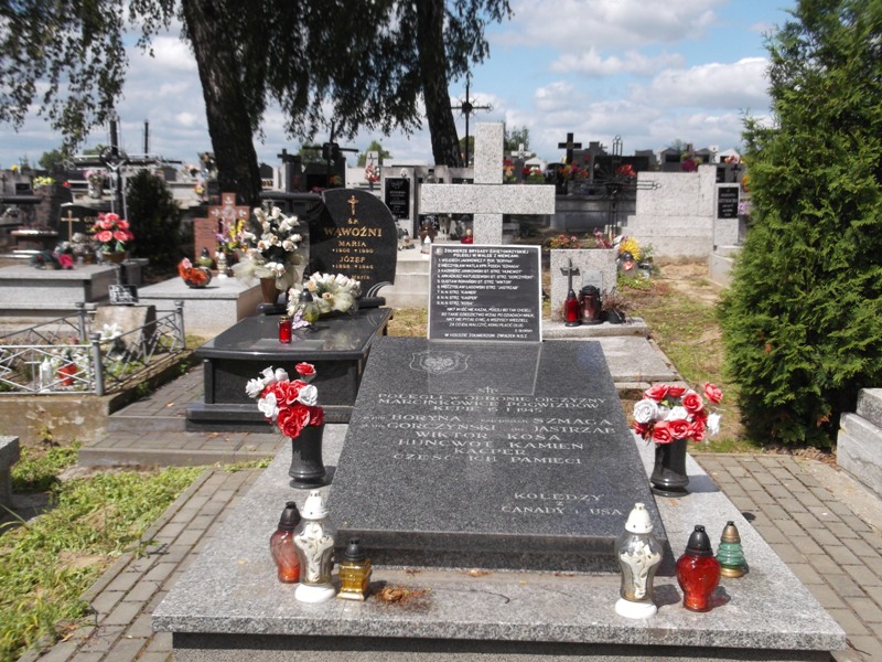 U wezgłowia mogiły umieszczony jest krzyż z bloków jasnego kamienia z czarną tabliczką z napisem: „ŻOŁNIERZE BRYGADY ŚWIĘTOKRZYSKIEJ/ POLEGLI W WALCE Z NIEMCAMI:/ 1. WOJCIECH JAKIMOWICZ P.POR. „BORYNA/ 2. MIECZYSŁAW MATLA KPR. PODCH. „SZMAGA”/ 3. KAZIMIERZ JANIKOWSKI ST. STRZ. „HUNCWOT”/ 4. ARKADIUSZ MATUSZEWSKI\ ST. STRZ. „GORCZYŃSKI”/ 5. GUSTAW ROMAŃSKI ST. STRZ. „WIKTOR”/ 6. MIECZYSŁAW ŁAGOWSKI STRZ. „JASTRZĄB”/ 7. N.N. STRZ. „KAMIEŃ”/ 8. N.N. STRZ. „KASPER”/ 9. N.N. STRZ. „KOSA”/ NIKT IM IŚĆ NIE KAZAŁ, POSZLI BO TAK CHCIELI/ BO TAKIE DZIEDZICTWO WZIĄŁ PO DZIADACH WNUK/ NIKT NIE PYTAŁ O NIC, A WSZYSCY WIEDZIELI, / ZA CO IDĄ WALCZYĆ, KOMU PŁACIĆ DŁUG/ E. SŁOŃSKI/ W HOŁDZIE ŻOŁNIERZOM ZWIĄZEK N.S.Z.