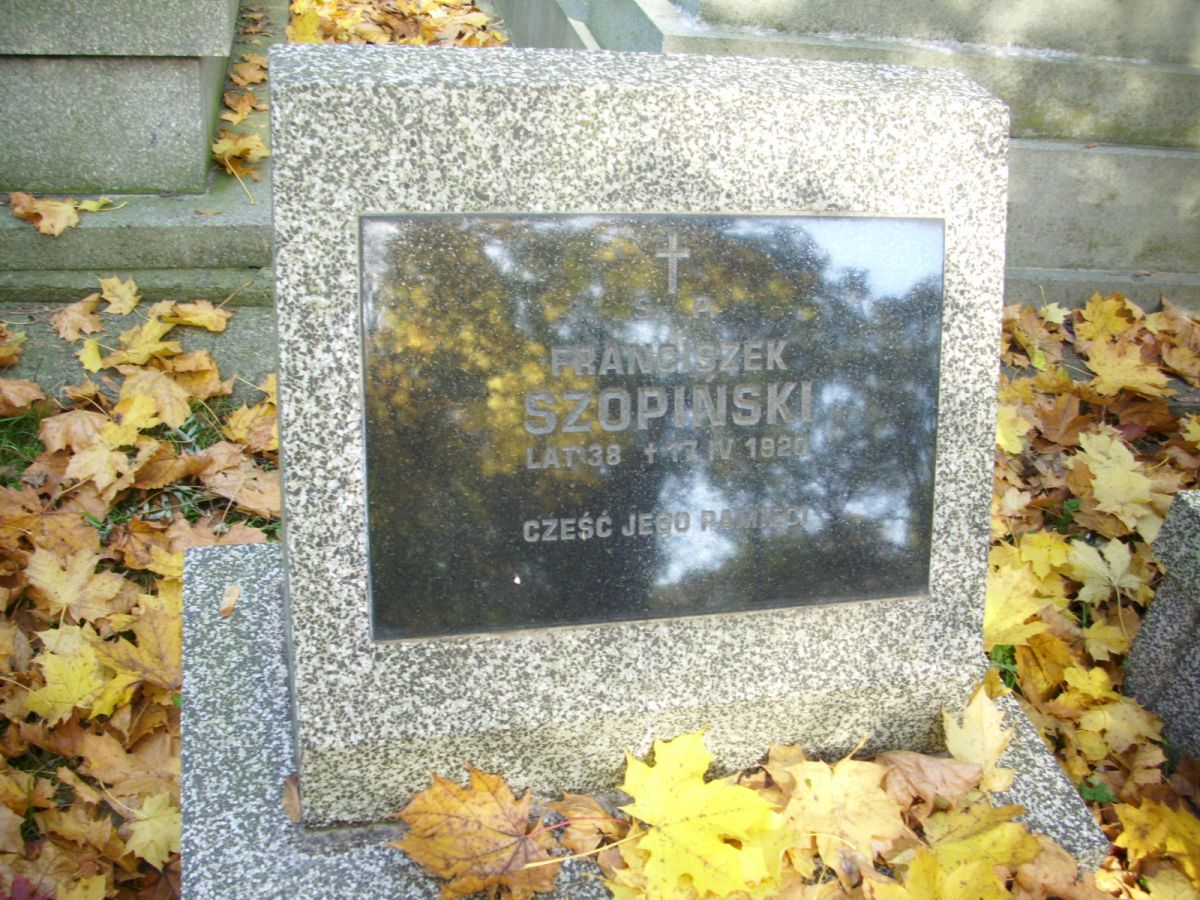 MOGIŁA FRANCISZKA SZOPIŃSKIEGO, PORUCZNIKA WOJSKA POLSKIEGO Z KWIETNIA 1920 R. (PAS 33A-2-46), NA CMENTARZU RAKOWICKIM W KRAKOWIE