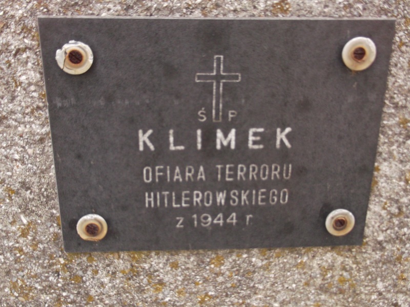 Pochowano tu osobę o nazwisku lub pseudonimie Klimek, ofiarę okupanta niemieckiego z 1944 r.