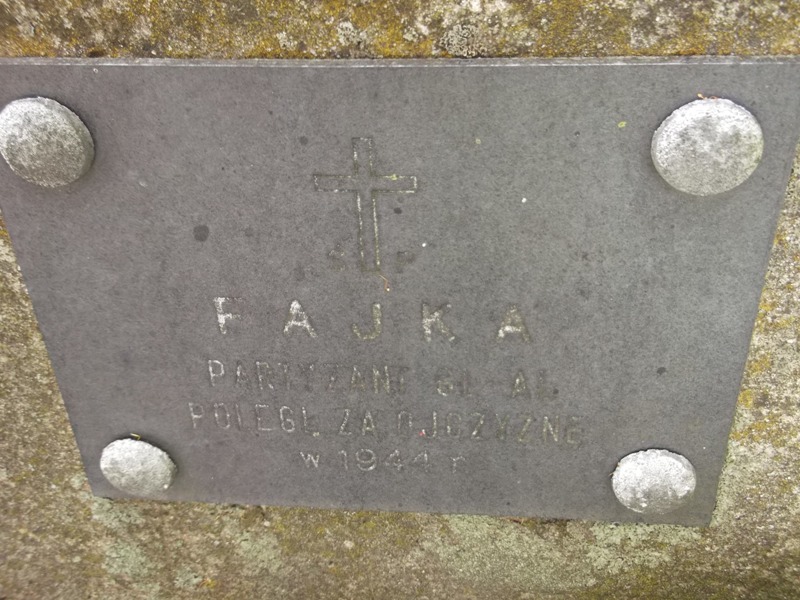 Mogiła ziemna w prostokątnym, betonowym obramowaniu, u wezgłowia ścięta pulpitowo betonowa stela z napisem: „چP/ FAJKA/ PARTYZANT GL AL/ POLEGŁ ZA OJCZYZNĘ/ W 1944 r.”