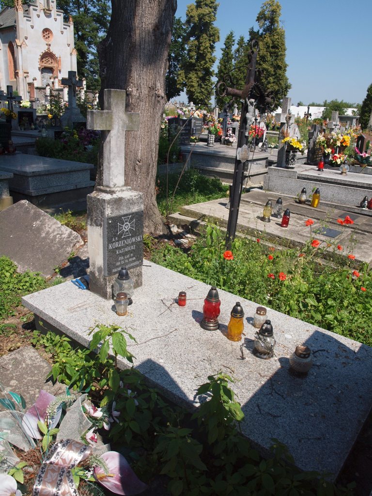 Mogiła obramowana i nakryta granitową płytą, u wezgłowia prostopadłościenny postument zwieńczony krzyżem. Na postumencie umieszczona jest tablica z wyobrażeniem Orderu Virtuti Militari oraz napisem: „Ś.P./ KORZENIOWSKI/ KAZIMIERZ/ ŻYŁ LAT 21/ ZM. 25.10.1914R./ ŻOŁNIERZ LEGIONISTA”.