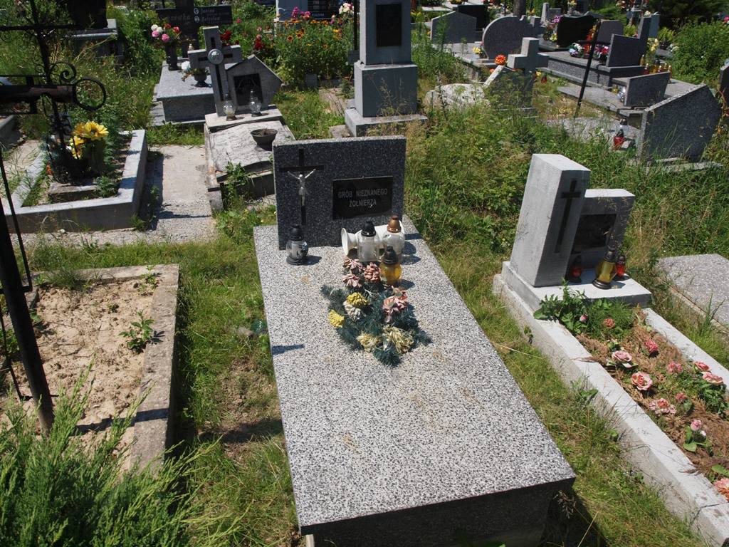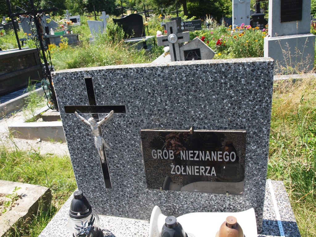 Lastrykowy nagrobek z prostokątną stelą u wezgłowia. Na licu steli umieszczony jest krzyż z pasyjką oraz tablica z napisem: „GRÓB/ NIEZNANEGO ŻOŁNIERZA”.