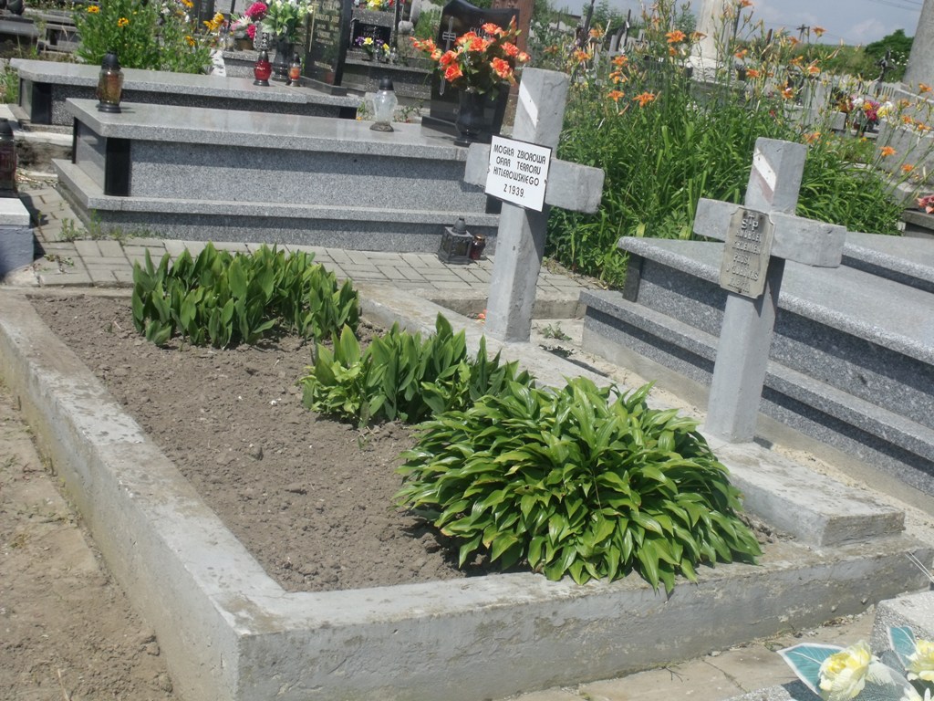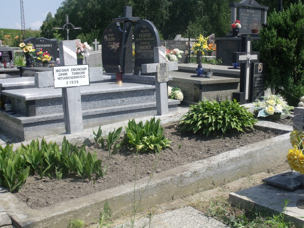 Mogiła ziemna w betonowym obramowaniu, przy dłuższej krawędzi mogiły umieszczone są dwa betonowe krzyże. Na pierwszym krzyżu znajduje się biała tablica z napisem „MOGIŁA ZBIOROWA/ OFIAR TERRORU/ HITLEROWSKIEGO/ Z 1939”, na drugim – tablica z napisem wykonanym wypukłymi literami „چP/ ANDRZEI/ KRZEMIEŃ/ PROSI/ O ZDROWAŚ/ MARYIA”.