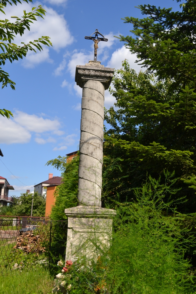 Pomnik usytuowany jest na niewielkim ziemnym kopcu i ma formę zwieńczonej metalowym krzyżem kolumny z piaskowca na prostopadłościennym postumencie. Według miejscowej tradycji w tym miejscu pochowano powstańców z 1863 r.