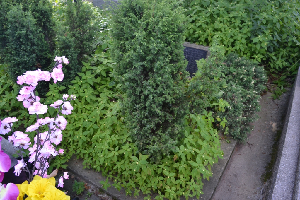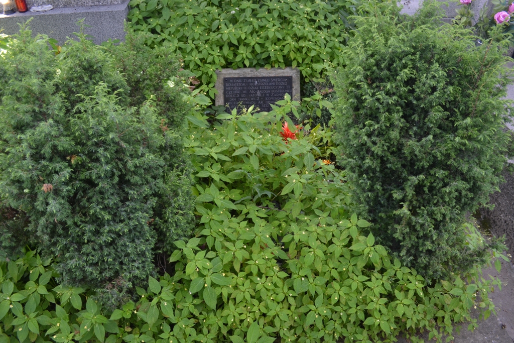 Mogiła ziemna w prostokątnym, betonowym obramowaniu, na mogile betonowy postument z tablicą z napisem: „W DNIU 7.I.1943 ZGINĘLI ŚMIERCIĄ/ BOHATERSKĄ ROZSTRZELANI PRZEZ NIEMIECKI ODDZIAŁ EGZEKUCYJNY SS/ CZŁONKOWIE AK-ZAŁOGA POSTERUNKU/ POLICJI GRANATOWEJ W ŻARNOWCU/ JAN IWANKIEWICZ – KOMENDANT, OFICER WYWIADU AK OBWODU OLKU-/ SKIEGO, PSEUDONIM „SER”, POLICJANCI/ CZŁONKOWIE AK: MICHAŁ BŁAS, FRANCI-/ SZEK ŁUCARZ, JAN PIOTROWSKI, FERDY-/ NANT SADOWSKI, RUDOLF SZNAJDER.” Poniżej umieszczona jest podłużna tabliczka z napisem „CZEŚĆ ICH PAMIĘCI”.