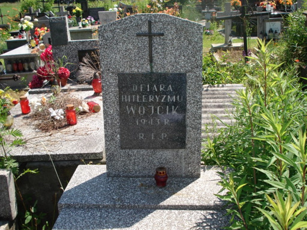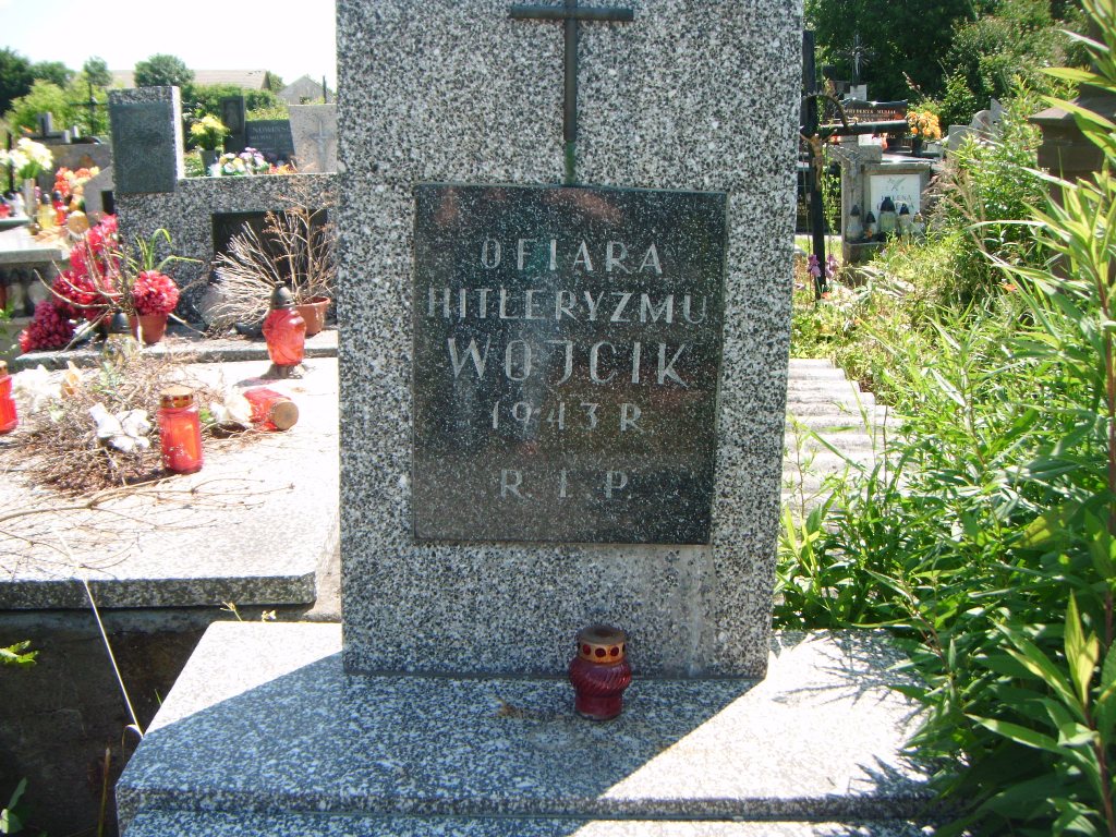 Lastrykowy nagrobek ze stelą o ściętych narożach u wezgłowia. Na steli umieszczony jest krzyż oraz tablica z napisem: „OFIARA/ HITLERYZMU/ WÓJCIK/ 1943 R./ R.I.P”.