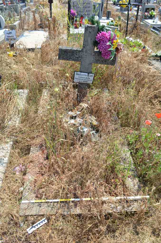 Mogiła ziemna w betonowym obramowaniu, u wezgłowia betonowy krzyż z tabliczką z napisem: „MIKOŁAJCZYK LUCJAN/ CZŁONEK B.Ch./ POLEGŁ ZA OJCZYZNĘ/ w r. 1944”.