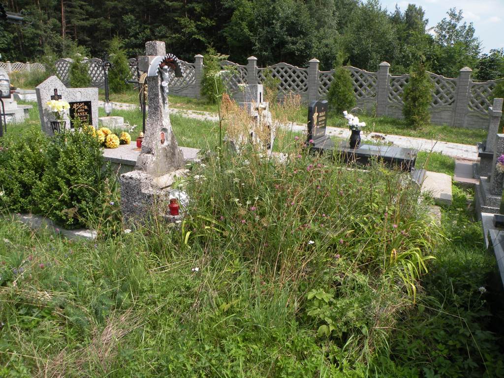 Mogiła ziemna w betonowym obramowaniu, u wezgłowia lastrykowy postument, zwieńczony krzyżem z metalową pasyjką oraz z glorią z ząbkowanej blachy. Po obu stronach postumentu znajdują się lastrykowe, opadające schodkowo murki. Na postumencie umieszczona jest tablica z napisem: „Ś.✝P./ STANISŁAW ADAMCZYK/ PRZEŻYŁ LAT 20/ ZMARŁ 10.III.1943 r.” Nad tablicą znajduje się medalion ze zdjęciem.