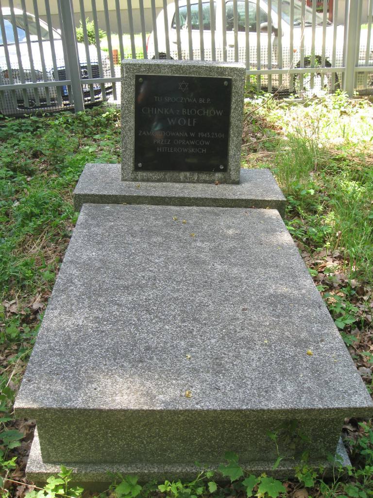 Mogiła obramowana i nakryta lastrykową płytą. U wezgłowia mogiły znajduje się prostokątna, lastrykowa stela z czarną tablicą z wyrytą Gwiazdą Dawida i napisem: „TU SPOCZYWA BŁ.P./ CHINKA z BLOCHÓW/ WOLF/ ZAMORDOWANA W 1943.23.04/ PRZEZ OPRAWCÓW/ HITLEROWSKICH”.