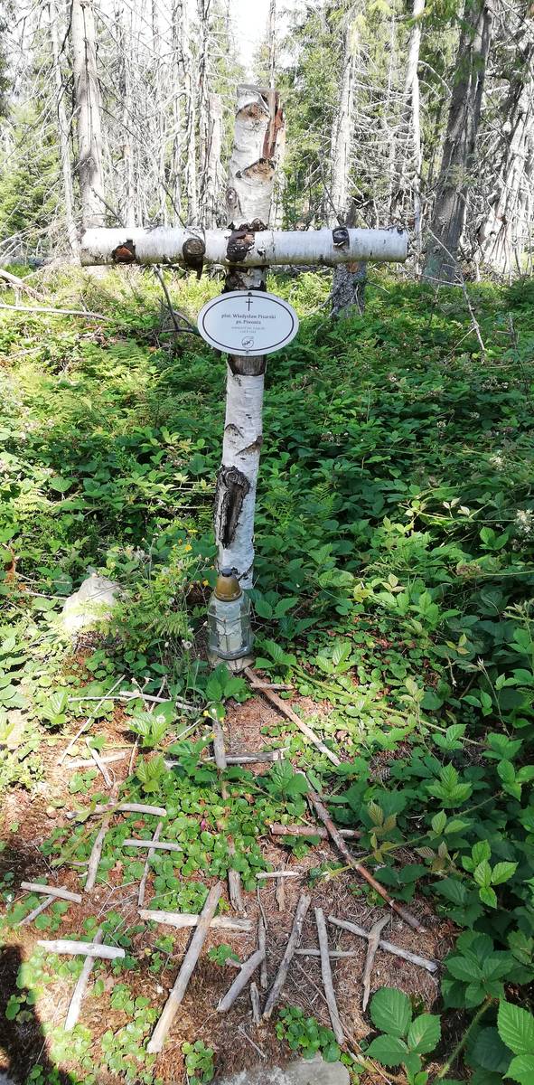 Mogiła ziemna oznaczona brzozowym krzyżem z owalną tabliczką z logiem Gorczańskiego Parku Narodowego i napisem: „†/ plut. Władysław Pisarski/ ps. Piwonia,/ żołnierz IV bat 1 psp AK/ 20 X 1944 r." Do mogiły prowadzi drogowskaz znajdujący się przy zielonym szlaku.