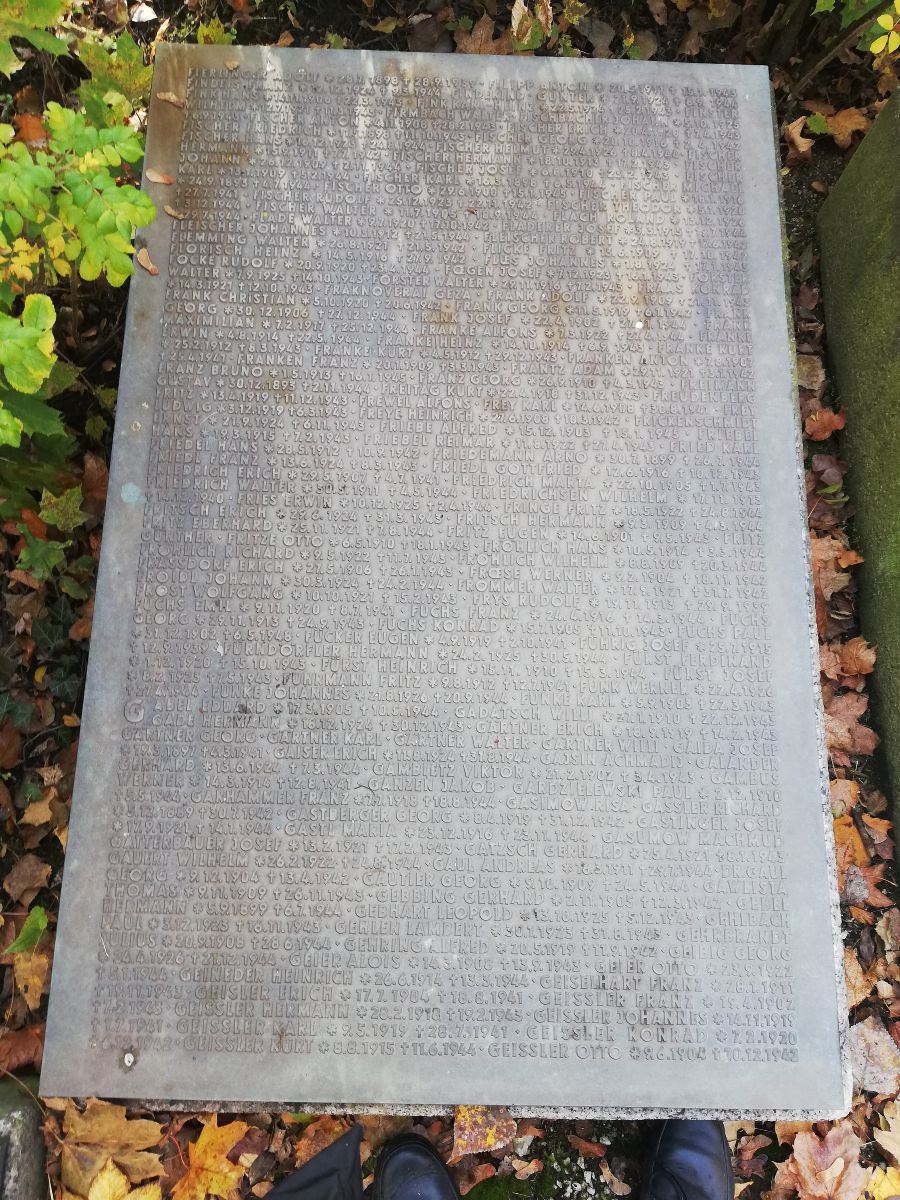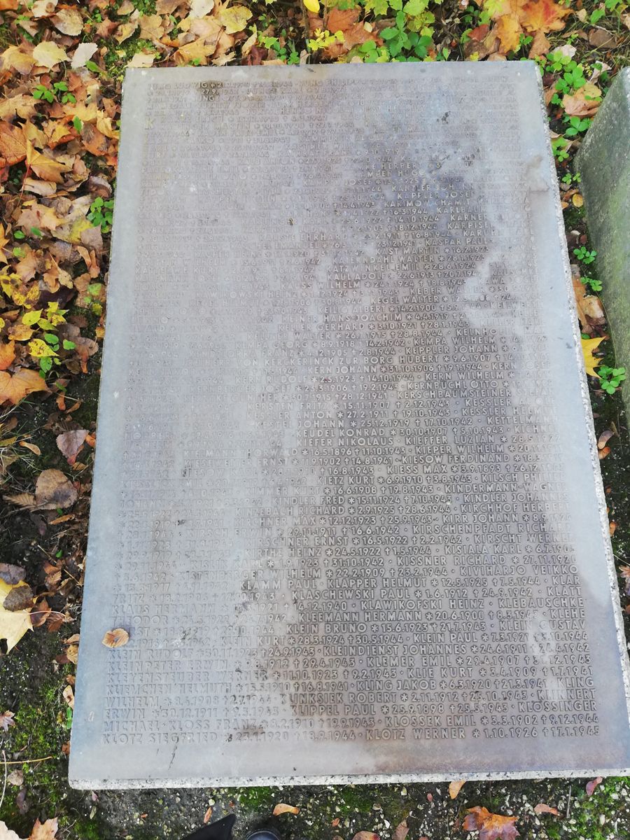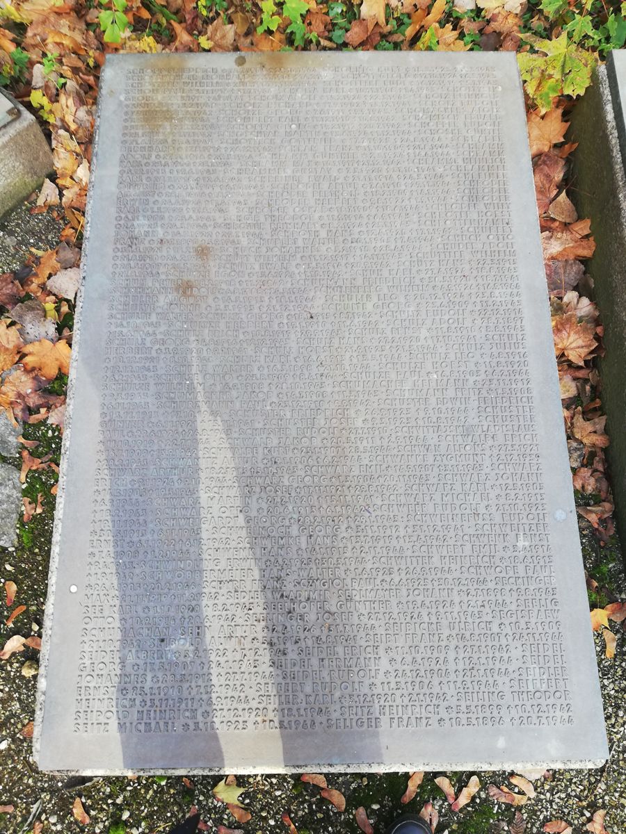 – metalowy ażurowy krzyż łacińskich z plakietą w formie gorejącego serca przebitego krzyżem oraz umieszczoną w metalowej ramce prostokątną tabliczką z napisem: „In dieser Erde ruht unser lieber Vater HEINRICH AIGNER/ KITZINGEN/ geb. 7.11.1906/ † 24.12.1943/ im Lazarett in KRAKOW”,