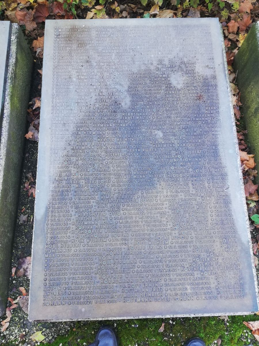 Pochowano tu nie mniej niż 3577 żołnierzy armii niemieckiej poległych lub zmarłych w okresie II wojny światowej. W 1993 r. dokonano uroczystego poświęcenia odnowionej kwatery.