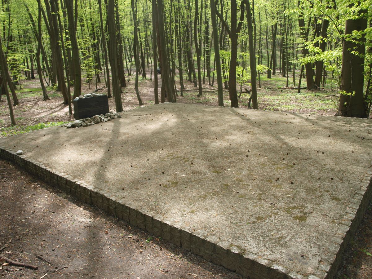 W Lesie Tynieckim latem 1942 r. przez okupanta niemieckiego rozstrzelanych zostało od 150 do 500 Żydów z okolic Krakowa. Ciała zamordowanych zakopano w zbiorowych mogiłach. Każda z dwóch mogił została otoczona płotem z metalowych prętów na betonowej podmurówce. W 2005 r. zostało wykonana obecne urządzenie mogił ze stelami z czarnego kamienia. W 2006 r. na mogile z poziomą stelą dopisane zostały dodatkowe nazwiska pochowanych.