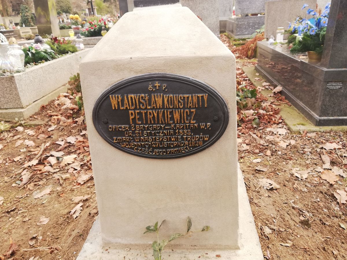 MOGIŁA POJEDYNCZA WŁADYSŁAWA PETRYKIEWICZA KAPITANA WOJSKA POLSKIEGO Z 1920 R. NA CMENTARZU RAKOWICKIM W KRAKOWIE (XVIII RZ. ZACH. GRÓB NR 1)
