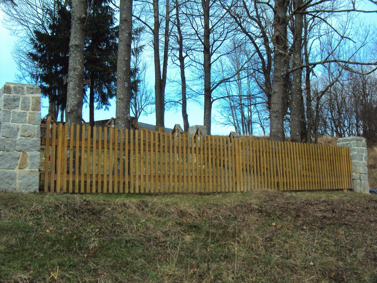 Cmentarz założony jest na planie zbliżonym do prostokąta z wcięciem od strony południowo-wschodniej. Składa się z trzech tarasów połączonych kamiennymi schodami. Najwyższy taras ogrodzony jest kamiennym murem, a pozostałe kamiennymi słupami połączonymi drewnianym, sztachetowym płotem. Wejście znajduje w południowym narożniku i zamykane jest drewnianymi dwuskrzydłowymi wrotami. Głównym elementem cmentarza jest wysoki drewniany, zdobiony krzyż z dwuspadowym zadaszeniem.