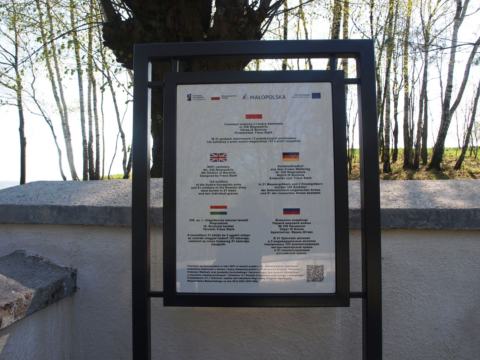 W 21 grobach zbiorowych i 2 pojedynczych pochowano 123 żołnierzy z armii austro-węgierskiej i 51 z armii rosyjskiej. W 2023 r. przeprowadzony został remont konserwatorski cmentarza.
