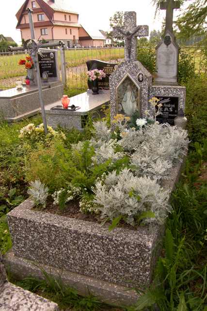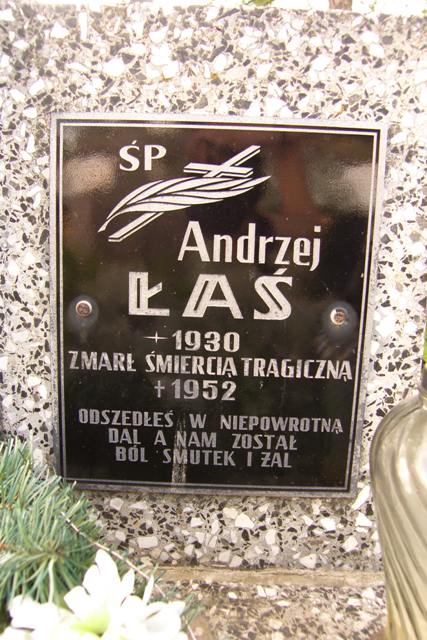 „ŚP Andrzej/ ŁAŚ/ +1930/ ZMARŁ ŚMIERCIĄ TRAGICZNĄ/ + 1952/ ODSZEDŁEŚ W NIEPOWROTNĄ/ DAL A NAM ZOSTAŁ/ BÓL SMUTEK I ŻAL”