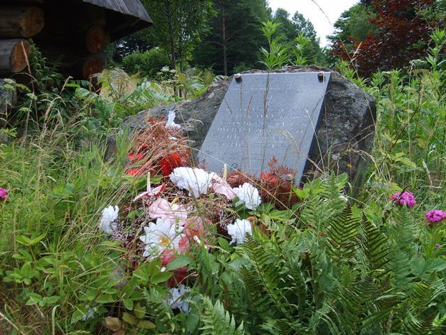 Przed kaplicą umieszczono głaz pamiątkowy z tablicą i napisem: