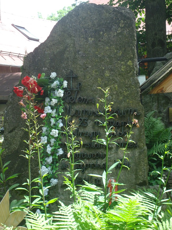 „چP/ Helena Marusarzówna/ lat 23 narciarska/ mistrzyni Polski/ rozstrzelana przez hitlerowców/ w Pogórskiej Woli/ w 1941 r.”
