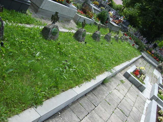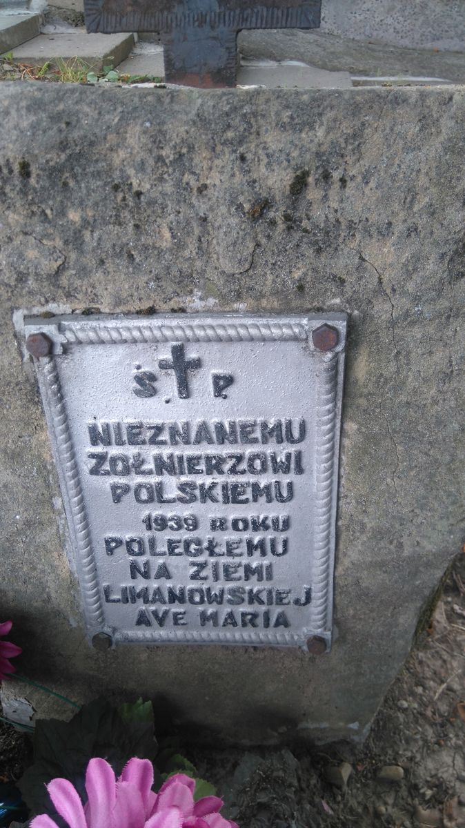 – mogiła pojedyncza z nagrobkiem w formie metalowego krzyża maltańskiego na betonowym postumencie, w którego licu umieszczona jest tabliczka memoratywna z napisem: „Ś.†P./ NIEZNANEMU ŻOŁNIERZOWI POLSKIEMU/ 1939 ROKU/ POLEGŁEMU/ NA ZIEMI LIMANOWSKIEJ/ AVE MARIA”. Za mogiłą 78 rozstrzelanych, przy murze cmentarnym znajduje się niewielka obramowana mogiła z betonową poduszką z metalowym emblematem. W obrębie obramowania znajduje się nagrobek z tablicą z jasnego kamienia z napisem: „Ś.P. JERZY KALITA/ *22 I 1923 - +26 II 1944/ Prosi o zdrowaś Maria".