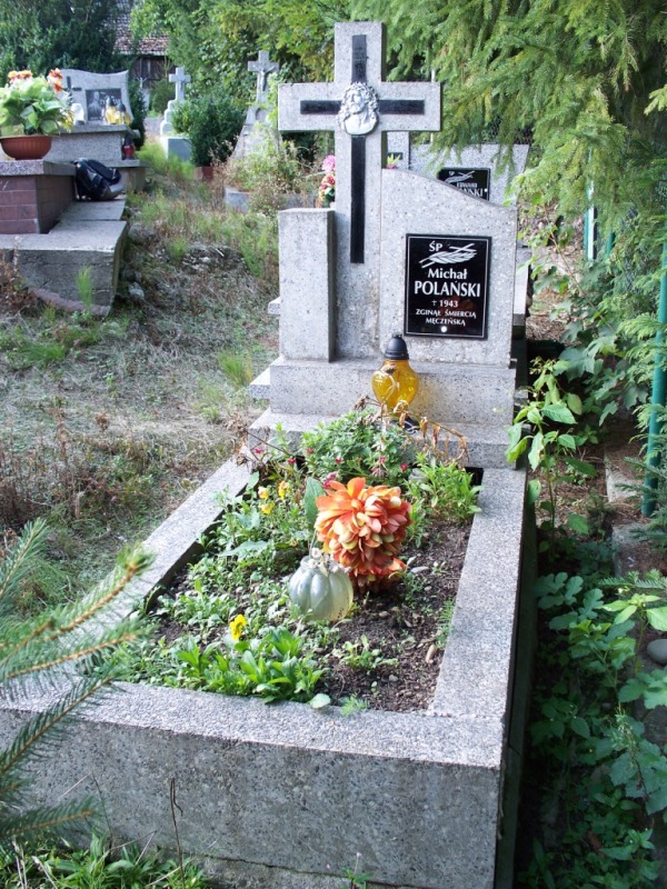 Mogiła ziemna w lastrykowym obramowaniu. U wezgłowia mogiły znajduje się lastrykowy krzyż, na licu którego umieszczone są: krzyż z czarnych, szklanych listew oraz medalion z głową Chrystusa. Obok krzyża umieszczona jest lastrykowa płyta z tablicą z ciemnego szkła, z namalowanym, pochylonym krzyżem i liściem palmowym oraz napisem: „ŚP/ MICHAŁ/ POLAŃSKI/ † 1943/ ZGINĄŁ ŚMIERCIĄ MĘCZEŃSKĄ”.