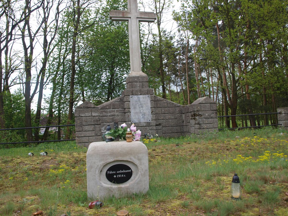 Cmentarz założony jest na planie prostokąta i otoczony ogrodzeniem ze słupów, wykonanych z betonowych bloczków, połączonych trzema metalowymi poręczami. Znajdujące się od strony zachodniej wejście, poprzedzone jest betonowymi schodami i zamykane jednoskrzydłową furtką z metalowych prętów. Główny element cmentarza stanowi betonowy krzyż łaciński, umieszczony na podwyższonym odcinku muru. Poniżej krzyża na murze umieszczona jest tablica z napisem w języku niemieckim: „+ 1914 – 1915/ SOLDATENTOD/ IST HEILIG UND BRICHT/ DES HASSENS GEBOT./ FREUND UND FEIND. VON/ WUNDEN VERSÄHRT/ SIND DER GLEICHEN/ LIEBE UND EHRE WERT”.
