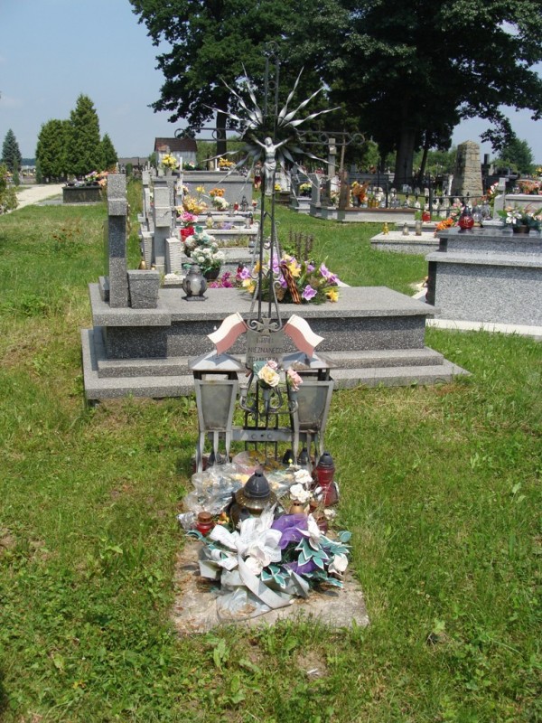 Mogiła nakryta betonową płytą, u wezgłowia ażurowy metalowy krzyż łaciński z pasyjką i promienistą glorią. W dolnej części krzyża znajduje się metalowa tabliczka z napisem: „GRÓB NIEZNANEGO ŻOŁNIERZA”. Do tabliczki przymocowany jest metalowy krzyż maltański z wyrytymi datami: „1939-1945”. Po obu stronach tabliczki umieszczone są biało-czerwone chorągiewki. U podstawy krzyża znajdują się dwa pojemniki na znicze.