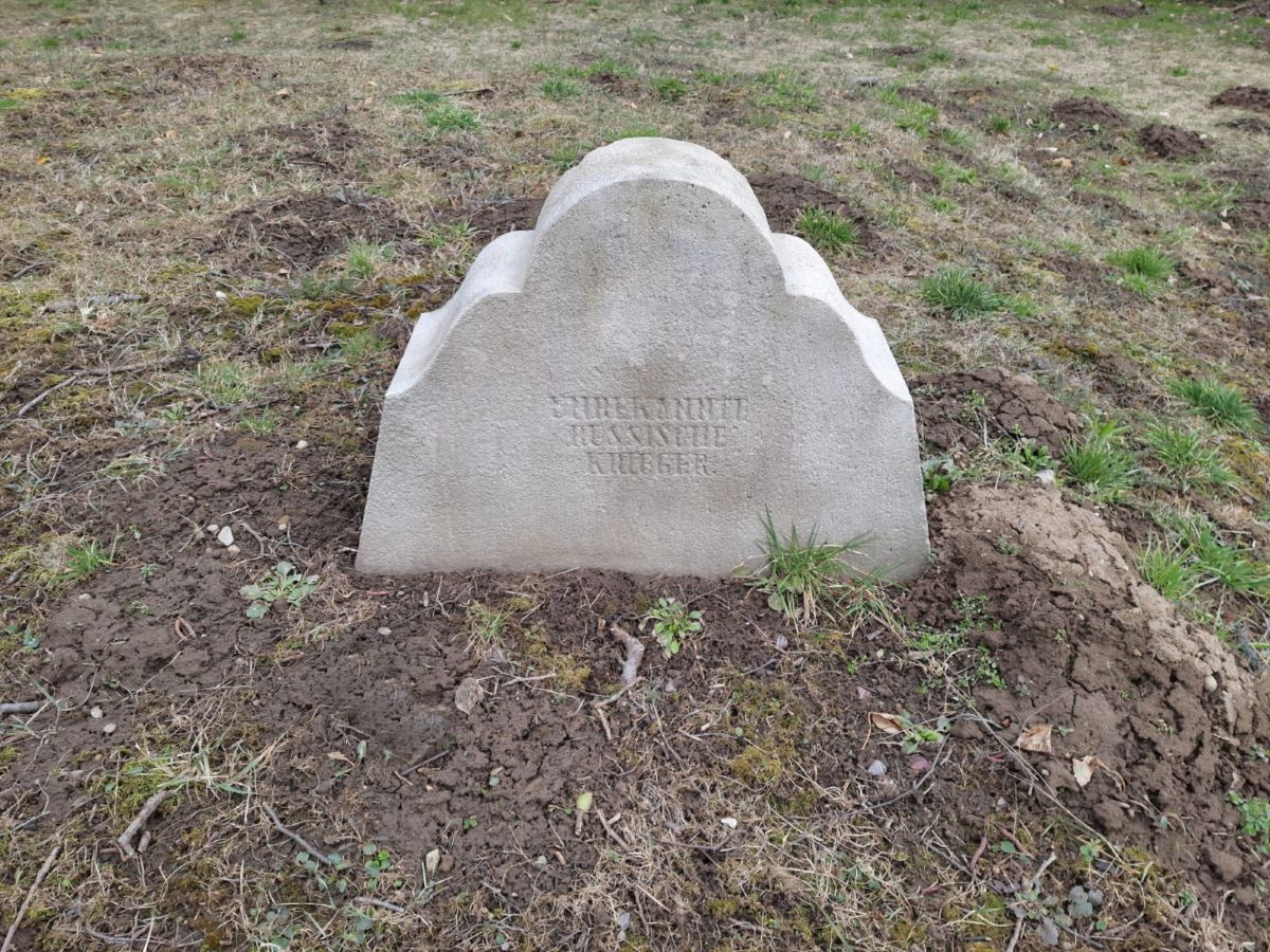 Na cmentarzu znajdują się nagrobki w formie ozdobnych kamiennych steli z wykutym napisem: „UNBEKANNTE RUSSISCHE KRIEGER” oraz dwuramiennych krzyży z płaskownika osadzonych na okrągłych betonowych cokolikach. Krzyże mają na dole pionowej listwy ramkę na umieszczenie emaliowanych tabliczek z informacjami o pochowanych.