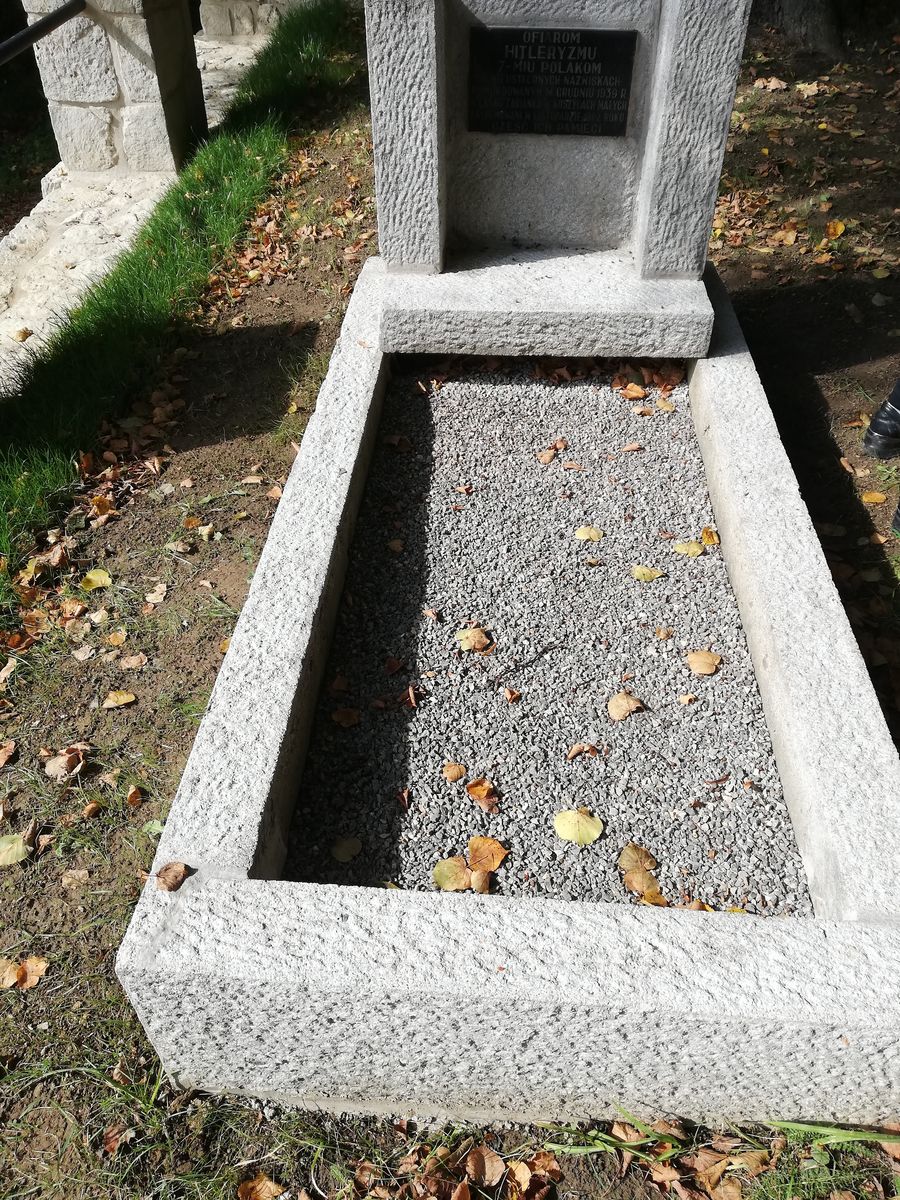 Na cmentarzu znajdują się dwie mogiły z II wojny światowej, w formie grobów ziemnych, w betonowym obramowaniu z betonową stelą, flankowaną po obu stronach przez prostopadłościenne słupki. Na stelach wmurowana są tablice z napisami: