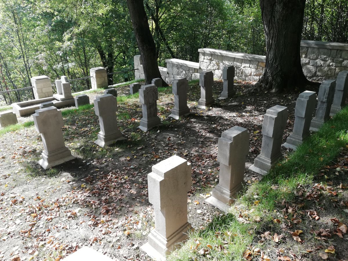 Na cmentarzu znajdują się nagrobki z I wojny światowej w formie masywnych betonowych krzyży, o krótkich ramionach, z umieszczonym na licu żeliwnym krzyżem maltańskim z motywem wieńca laurowego lub małym, żeliwnym krzyżem lotaryńskim. Na nagrobkach umieszczone są owalne tabliczki memoratywne z informacjami o pochowanych.