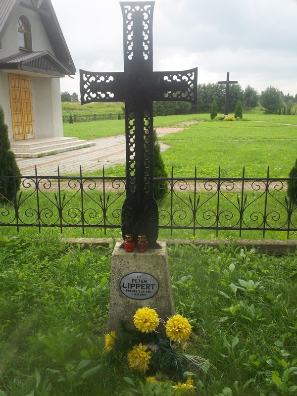 – żeliwnego, ażurowego krzyża lotaryńskiego na betonowym postumencie,