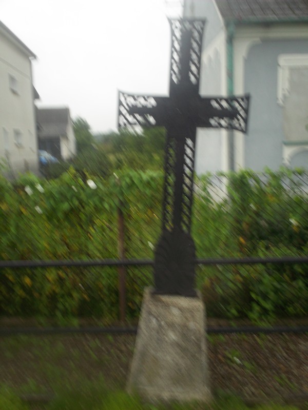 – żeliwnego krzyży maltańskiego z motywem wieńca laurowego, osadzonego na betonowym postumencie.