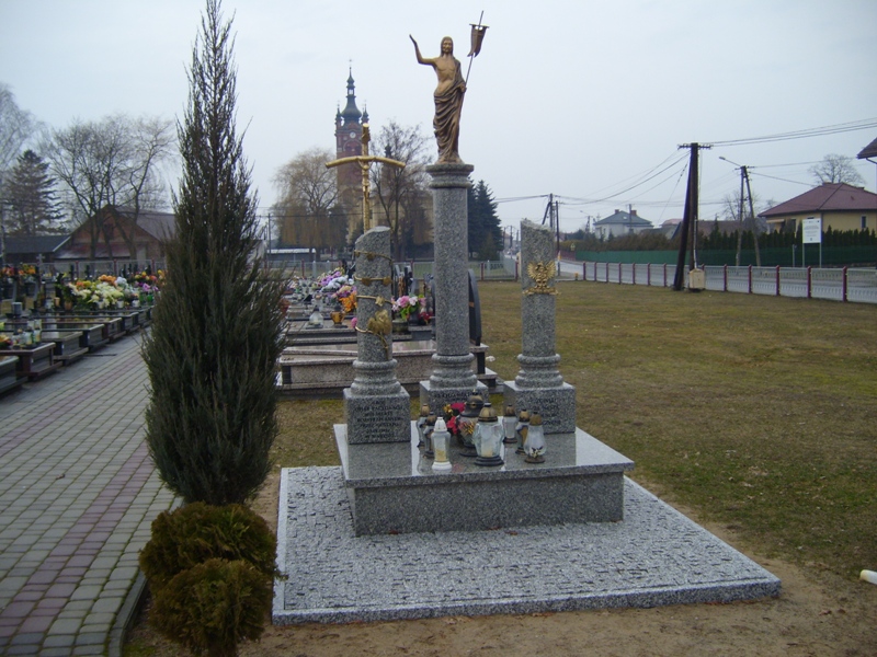 – „CURYŁO WIKTORIA/ ur. 08.09.1901 r./ DZIK FRANCISZEK/ ur. 26.04.1902 r./ KWAŚNIAK JAN/ ur. 13.09.1872 r./ NIECH ODPOCZYWAJĄ W POKOJU” (środkowa kolumna),