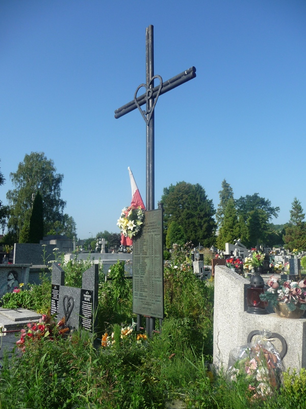 – „Ś.†P./ Tu spoczywa rodzina Solarzy/ rozstrzelana 6.III.1944 r./ przez Niemców za działalność/ antyhitlerowską/ w Armii Krajowej/ w okresie II wojny światowej/ SOLARZ JAN LAT 64/ SOLARZ TEKLA LAT 49/ SOLARZ MARIA LAT 30/ SOLARZ KAZIMIERZ LAT 20/ SOLARZ STANISŁAW LAT 18/ SOLARZ JULIAN LAT 14/ SOLARZ WŁADYSŁAW LAT 11/ CZEŚĆ ICH PAMIĘCI”